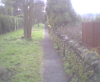 Right through gap into jitty to top of Hill Rise